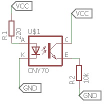 Como sistema de orientação para o veiculo, optou-se pelos sensores CNY70 devido ao seu encapsulamento que confere ao componente robustez e durabilidade.