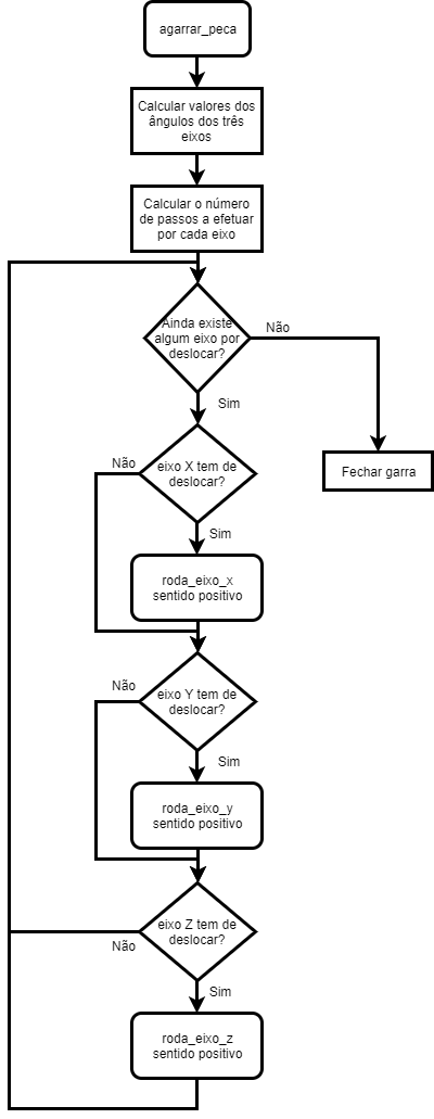 Fig. 25 - Fluxograma da função agarrar_peca A função color_read() faz a leitura RGB da peça presa na garra.