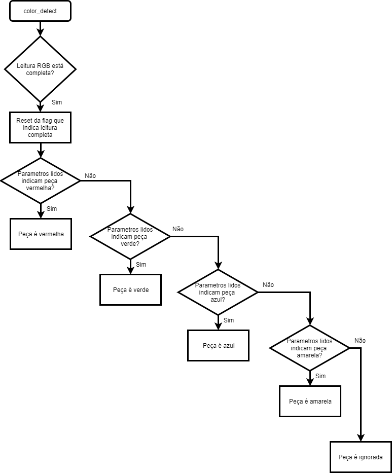 Fig. 26 - Fluxograma da função color_read A função color_detect() é responsável por determinar a cor da peça conforme os valores lidos pelo sensor de cores.