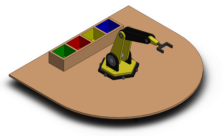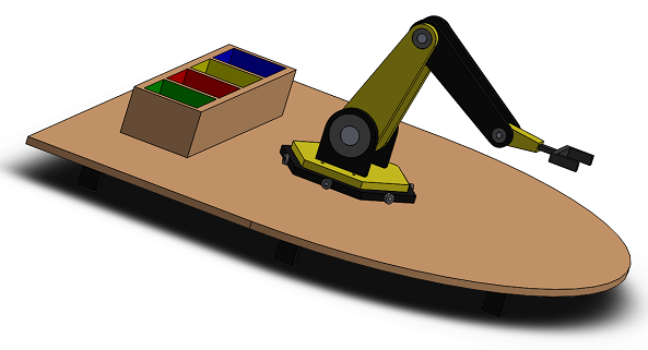 Apresentamos abaixo algumas fotografias do braço robótico desenhado no software Solid Works e protótipo real.