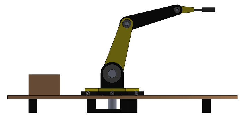 No caso do nosso projeto, quando se coloca o braço robótico em funcionamente, este procura a posição inicial para depois começar todo o processo. O movimento dos quatro eixos do braço robótico é conseguido através de motores de passo a passo Nema 23 de 2.8 Amperes. Para ser possível controlar este tipo de motores, foram usados drivers com a referência DRV8825 [4] e A4988 [5] que necessitam apenas de dois sinais de comando - um para definir o sentido de rotação e outro para marcar o passo a efetuar. O controlo de todo este sistema foi conseguido através do microcontrolador ATmega2560 [6] que se encontra instalado numa plataforma Arduino Mega. Este tipo de sistema automático pode ser encontrado na Indústria executando funções de pintura, fundição, soldagem, montagem, movimentação de cargas, inspeção de produtos, tudo realizado com uma precisão, velocidade e robustez relativamente elevadas. Outra grande aplicação deste tipo de robot é na área da medicina, aplicado principalmente em cirurgias médicas onde é necessário um grande cuidado e precisão como operações de risco ao coração e intervenções mais delicadas ao nível da visão [7].