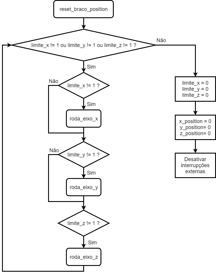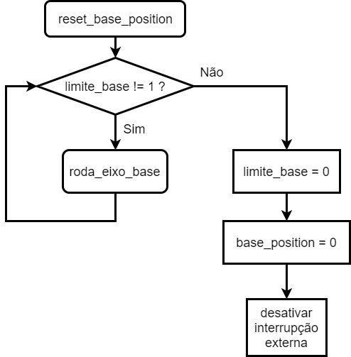 Fig. 22 - Fluxograma da função reset_base_position A função reset_braco_position() desloca os eixos X Y e Z para a posição inicial.