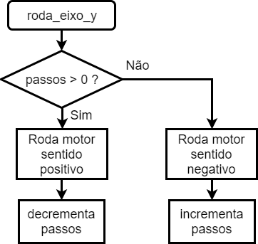 Fig. 20 - Fluxograma da função roda_eixo_y A função roda_eixo_z(int passos) recebe uma variável com o número de passos a serem efetuados pelo motor do eixo Z e faz o motor rodar 1 passo na direção pretendida.