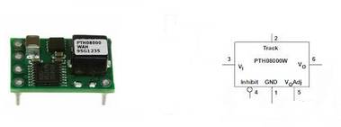 de tensão Para a escolha do regulador de tensão tivemos em consideração qual a tensão de entrada utilizada e qual a pretendida à saída. A utilização do PTH08000W deve-se ao facto de este satisfazer por completo todos os requisitos pretendidos, ou seja, funcionamento com tensões de entrada entre 4.5 V e 14 V, sendo a nossa de 7.5V, obtendo na saída tensões variáveis entre 0.9 V e 5.5 V, pretendendo obter 5V, ainda com uma corrente de 2.25 A. Esta escolha foi também efetuada devido ao seu custo de aquisição, pois dentro da gama de componentes semelhantes, este é um produto ‘low-cost’ tal como é referido no seu ‘datasheet’.