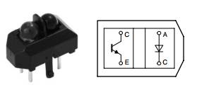 Figura 14 – Imagem e respetivo pinout do TCRT5000 Após esta escolha foi adotada uma determinada disposição, como se pode verificar na figura 15, para isso utilizamos 4 sensores, uma vez que com isto, conseguimos um maior controlo no nosso veículo no que diz respeito á velocidade e estabilidade.
