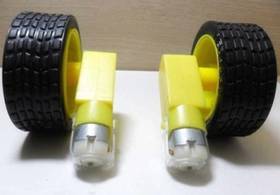 Motores No projeto foram usados dois motores de corrente contínua, ambos de caixa redutora, em que podemos ter tensões de entrada variáveis entre 3 e 6 Volts. A velocidade sem carga, com uma tensão na ordem dos 6V, é de 100 rpm, obtendo para estes valores de tensão correntes na ordem dos 350 mA. Portanto, para o seu correto funcionamento, não poderemos exceder este valor máximo de tensão admissível, por esses motivos estamos a trabalhar na ordem dos 6V, ou seja, estamos a ter cuidado com a tensão de funcionamento destes.