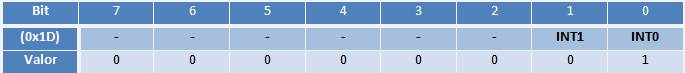 Ao colocar o bit menos significativo a 1, estamos a fazer o ‘enable’ do INT0. Código fonte |