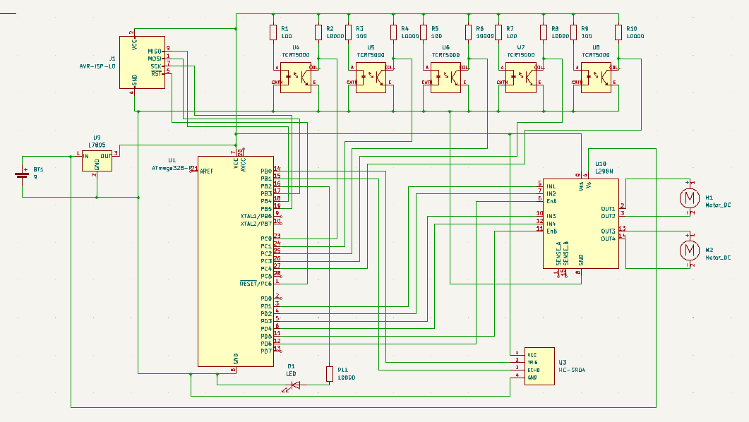 Nesta unidade curricular de Laboratório de Sistemnas, do 3 ano no 1 semestre da Licenciatura em Engenharia Eletrotécnica e de Computadores, foi-nos proposto a realização de um projeto implementando um protótipo funcional. O projeto proposto foi o AGV (Automated Guided Vehicle) seguidor de linha. O principal objetivo deste projeto é conceber e implementar um veículo robótico capaz de se locomover de forma autônoma ao longo de trajetos predefinidos por linhas no solo. Utilizando sensores e algoritmos, o veículo será capaz de seguir com precisão as linhas, realizando manobras eficientes e seguras. Neste projeto foi implementado um circuito com microcontrolador (Atmega328p), que controla motores DC através de uma ponte H (L298N), sonar (HC-SR04) uma tensão de 7,6 Volts, sensores de linha (TCRT5000) e um led que pisca a 1 Hz. Deste modo conseguimos que o nosso veículo conseguisse seguir uma linha.