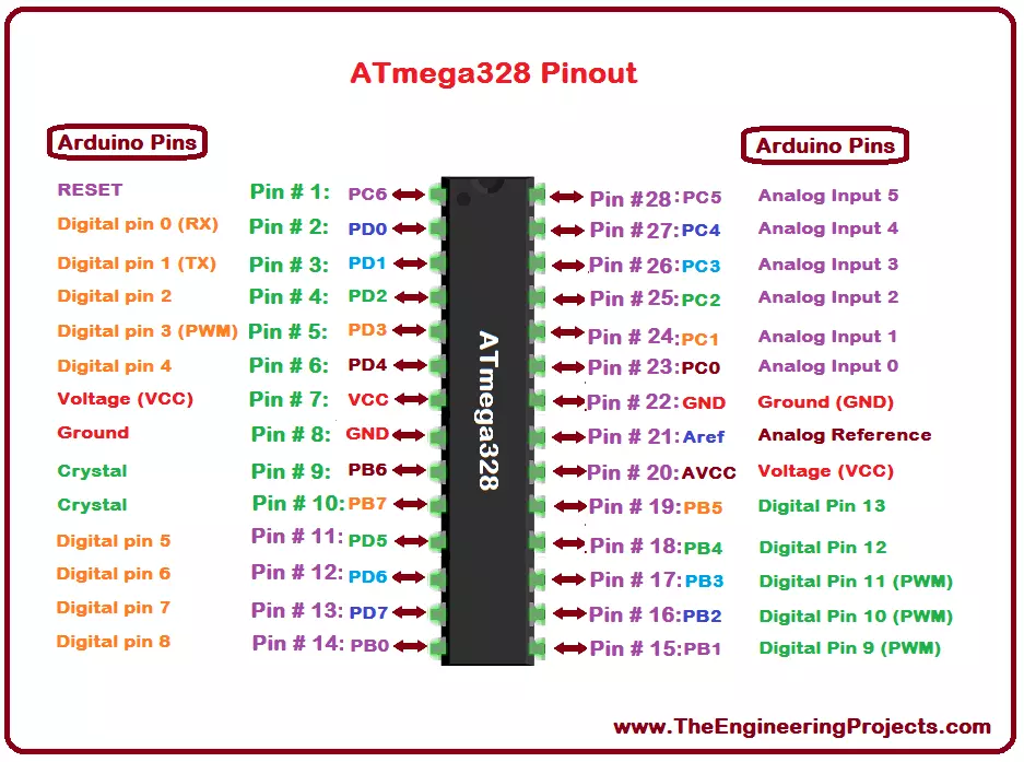 Microcontrolador (Atmega328P)No projeto foi utilizado o atmega328p, um microcontrolador da família AVR, pois contém as capacidades necessárias para a elaboração do trabalho, nomeadamente timers/counters, pinos para conversão ADC, vetores de interrupção externa, e pinos com saída de tensão em PWM.