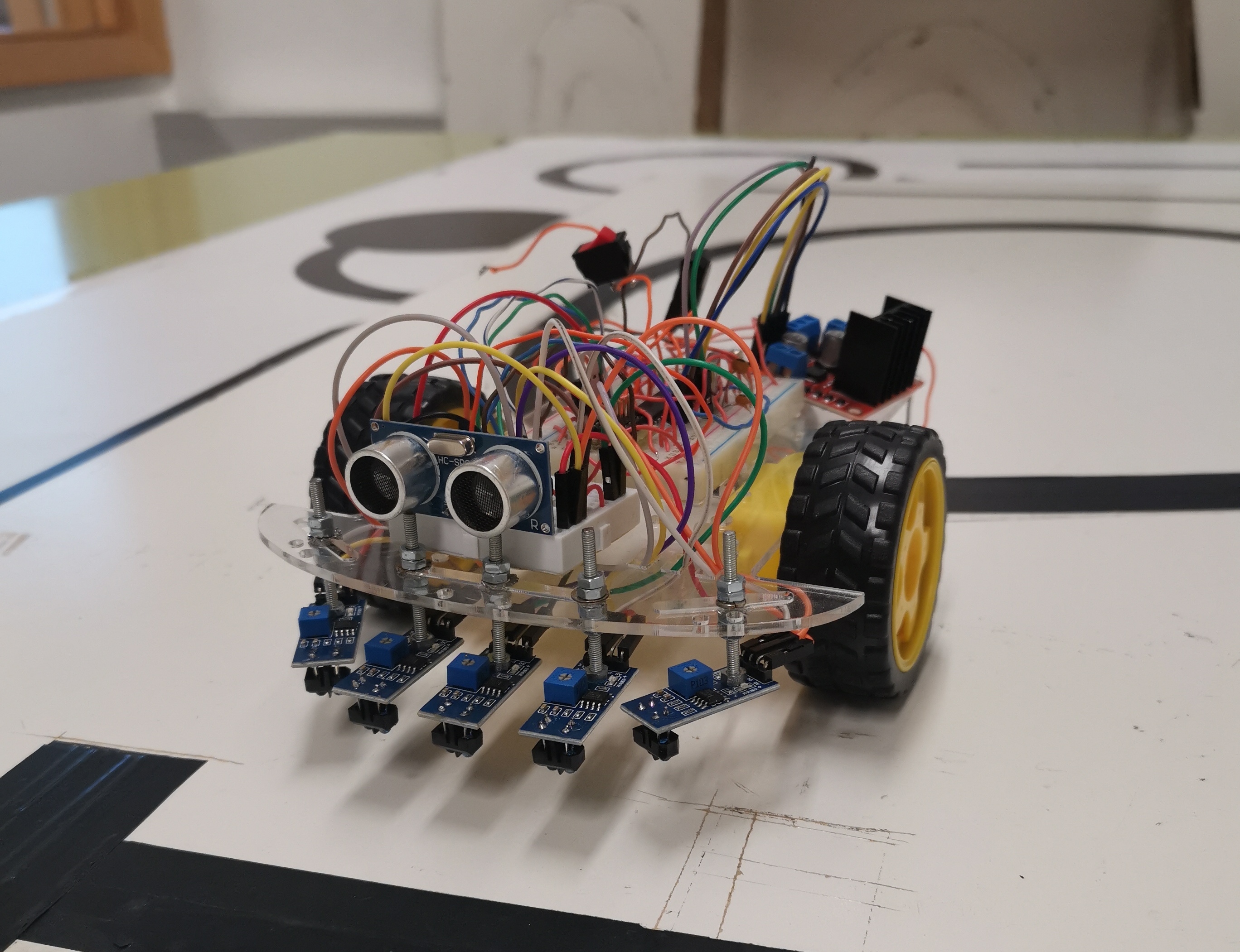Para concluir, o veículo autónomo implementado é capaz de detetar a linha e de a seguir, conseguindo, através de sensores de linha, ajustar o PWM associado aos motores de modo a realizar curvas ligeiras e acentuadas, com algumas limitações de largura de linha, e possui um led a piscar a uma frequência de 1 Hz. Com esta funcionalidade, o veículo autônomo demonstra um desempenho robusto e versátil em ambientes controlados, representando uma conquista notável no campo da programação embarcada e controle de robôs autônomos. Idealmente, o veículo seria capaz de parar se for detetado um obstáculo a menos de 10 centímetros da frente do veículo. Com a realização deste projeto conseguimos alcançar um avanço notável na compreensão e aplicação de conceitos fundamentais de programação em C. Uma das dificuldades na elaboração do AGV foi a presença de curvas de 90 graus na pista, e para isso foram implementados os dois sensores das pontas.